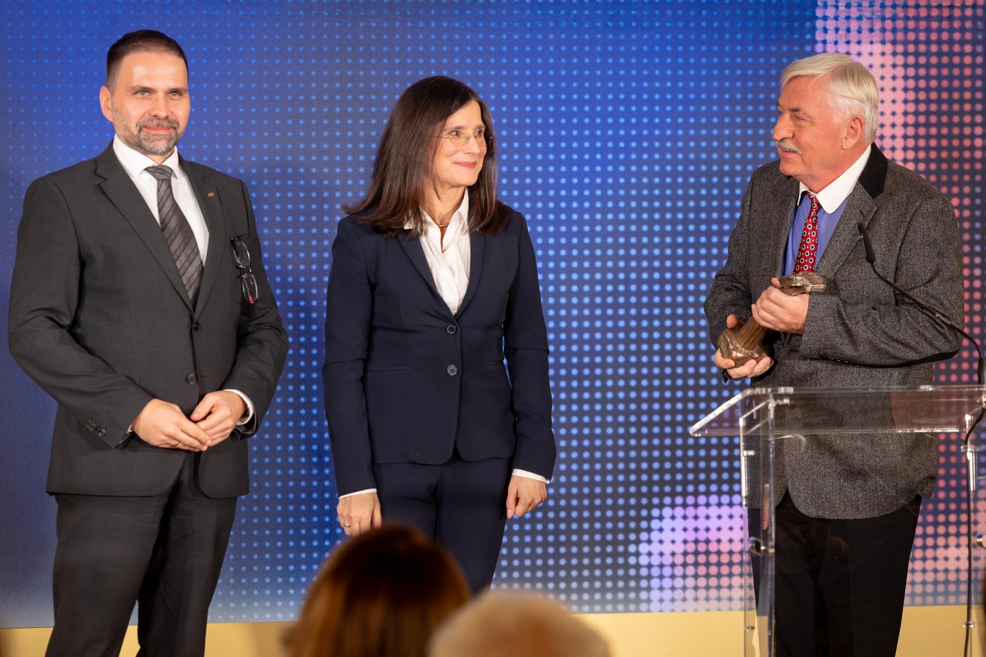 Jako trzeci statuetkę odebrał prof. Wojciech Knap z Instytutu Wysokich Ciśnień PAN i Laboratorium CENTERA w CEZAMAT Politechniki Warszawskiej, który otrzymał Nagrodę FNP w obszarze nauk matematyczno-fizycznych i inżynierskich za opracowanie nowych metod detekcji, wzmacniania i generowania fal terahercowych dla ultraszybkiej komunikacji bezprzewodowej. Prof. Knap nawiązał do konieczności zmian w polskim systemie: