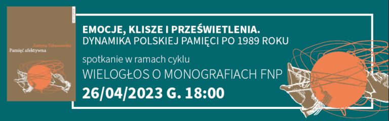 Zapraszamy na kolejny WIELOGŁOS O MONOGRAFIACH FNP. "Emocje, klisze i prześwietlenia. Dynamika polskiej pamięci po 1989 roku" to tytuł najbliższego spotkania, które odbędzie się 26 kwietnia br. o godz. 18.00 w siedzibie Fundacji na warszawskim Mokotowie. W dyskusji wezmą udział: dr Justyna...
